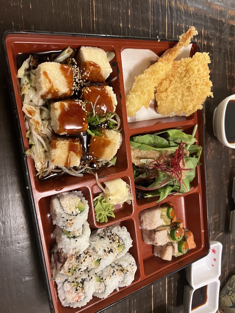 Massive quantity of delicious food. Service is leisurely so be patient. Very polite and friendly servers though. Chicken teriyaki and sushi rolls are the best weve had in town. Tempura is crispy without being greasy. Vegetarian options: Good vegetarian options here including tofu teriyaki.