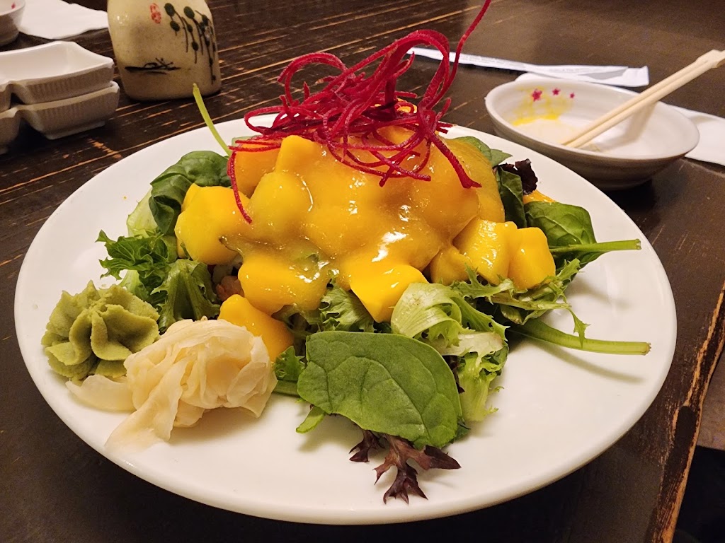 Beautiful flowering trees (artificial) with a layout that minimizes ambient noise so you can easily have a conversation without having to talk over neighbouring tables. I ordered the Lady Mango roll, and the roll was under a salad with mango pieces.