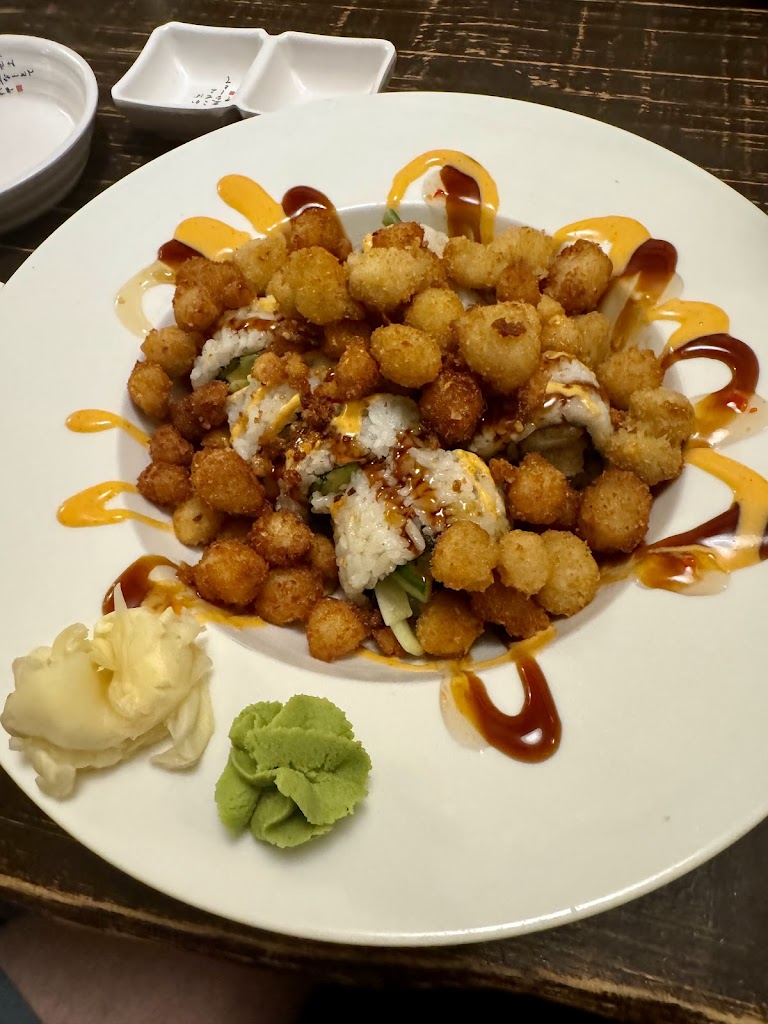 I recently ate there . Service and staffs is very friendly, quick. Price is reasonable. But quality of the food not that great. I order Spicy scallop roll, scallop so fishy, not fresh. I feel like frozen taste smell. Same thing with shirm, grilled scalop salad , so fishy , even they grilled Mango sunomono salad so disappointed. The vermicelli so hard, chewy. Just crunch roll, spicy salmon sashimi is ok. Overrall, hope ingredients getting better. Vibe, asmostphere is great.