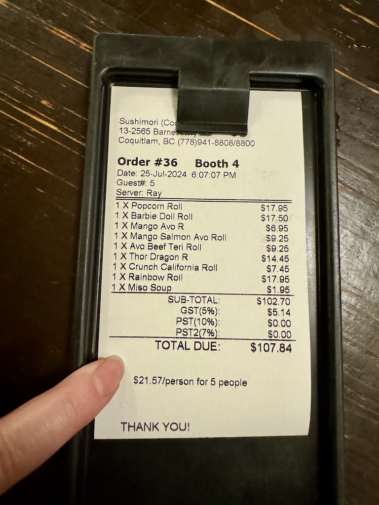 Beautiful interior in a large store And friendly staff The food was really delicious too I had a good time haha Thank you^^ I would recommend going here If you are in area and care to have a wonderful Sushi experience, go to Sushi Mori Coquitlam