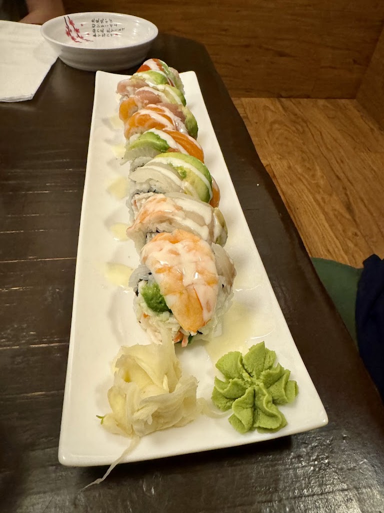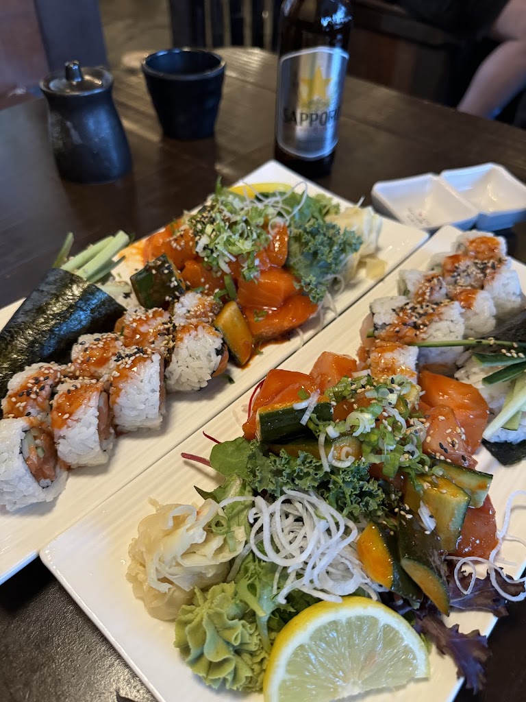 The atmosphere was warm and inviting, and the staff were very friendly. The food is good but we found it was a bit pricier than other places. While the staff were very kind, we didn’t get a tea refill for quite some time. Overall, the sushi was delicious and fresh, we’d come back again.