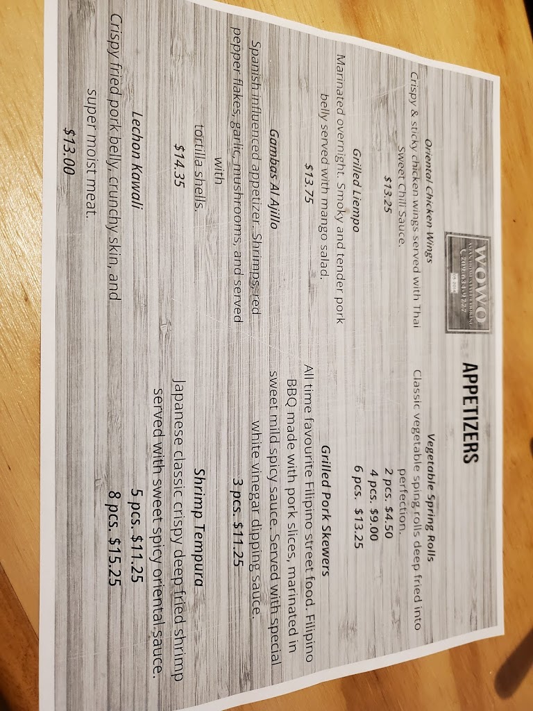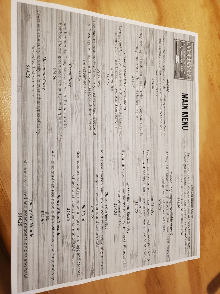 I went to the wowo express on west street. Service was fast and great. I had no idea what to get the server had great recommendations for different taste. She suggested Korean beef bulgogi which was delicious. I also had an iced coffee.