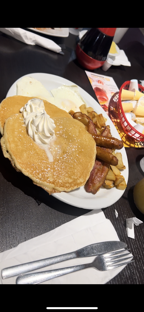 My family and I went to have breakfast there this morning. We were greeted with a very delightful host who was very happy, smiley, and giggly. She explained the specials to us and she took our drink order and she brought it back with no issue. I must say with her upbeat spirits and happy vibes. It just made my breakfast/day so much better. I woke up kind of grumpy and really didn t wanna go out for breakfast. Because of the young lady that dealt with me today she changed my whole day. Keep up the fantastic work. The food was amazing. Our waitress was OK too . The price is even great. I will definitely be back