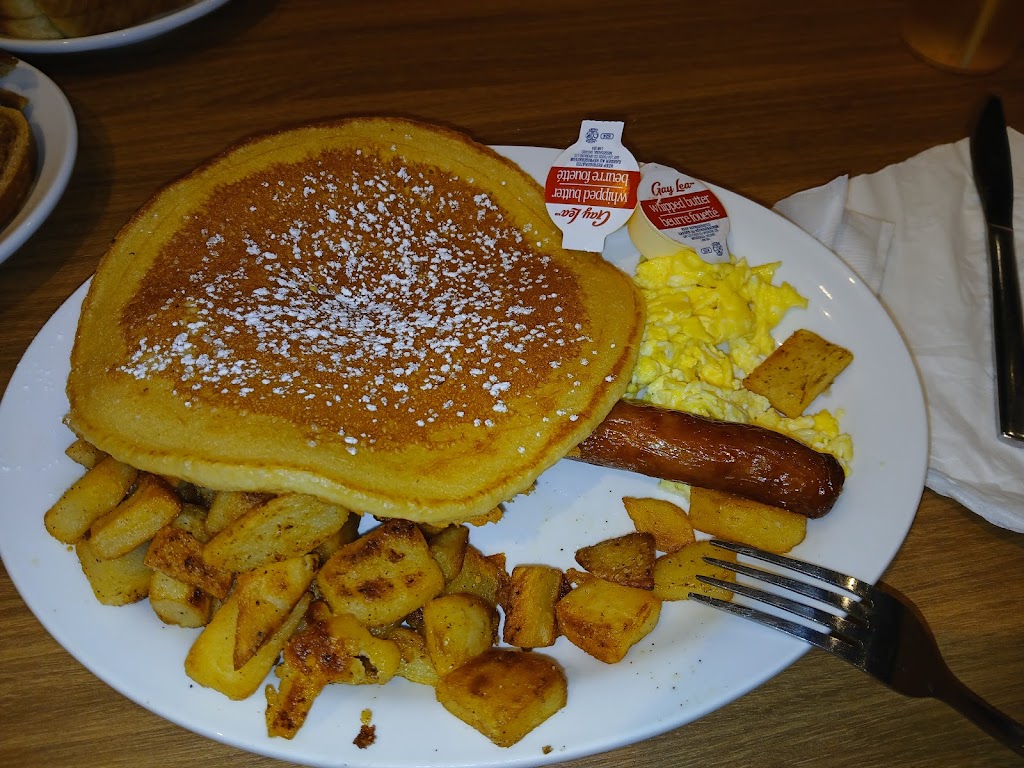 Front entrance crowds quickly. Okay breakfast food, AMAZING pancakes! Service was excellent Food : 4/5