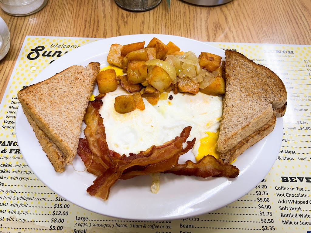 Sunnyside Up is a local treasure for breakfast lovers! The moment you step inside, you're welcomed by a cozy atmosphere and the smell of delicious food cooking in the kitchen. The menu has something for everyone, but I highly recommend their bacon, eggs, and potatoes with onions. It's a classic done right—the bacon is perfectly crispy, the eggs cooked just how you like them, and the potatoes with onions are bursting with flavor. The portions are generous, and everything tastes fresh and homemade. Beyond the food, the service is outstanding. The staff is friendly, attentive, and always makes sure you're well taken care of. If you're looking for a go-to spot for breakfast or brunch, Sunnyside Up is the place to be. It's the perfect blend of great food, wonderful service, and a laid-back vibe. Highly recommended!