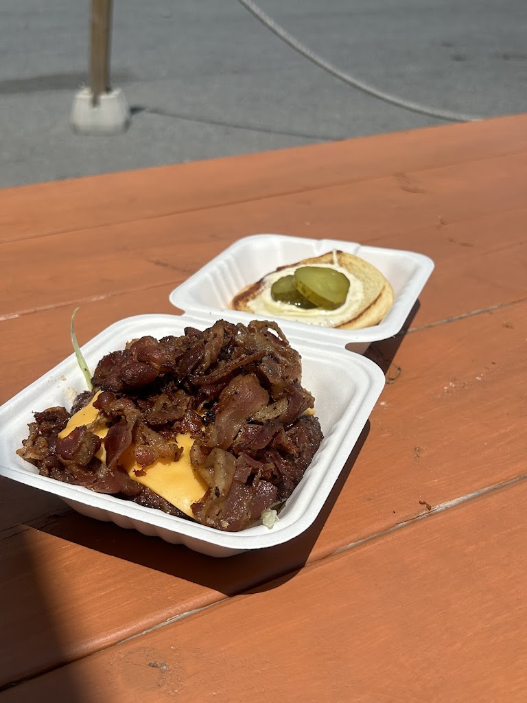 Best burger ever! Had the South Onions Burger. Spicy à souhait! Et le bacon Yummy! Parking: Food Truck in the Information Center Parking