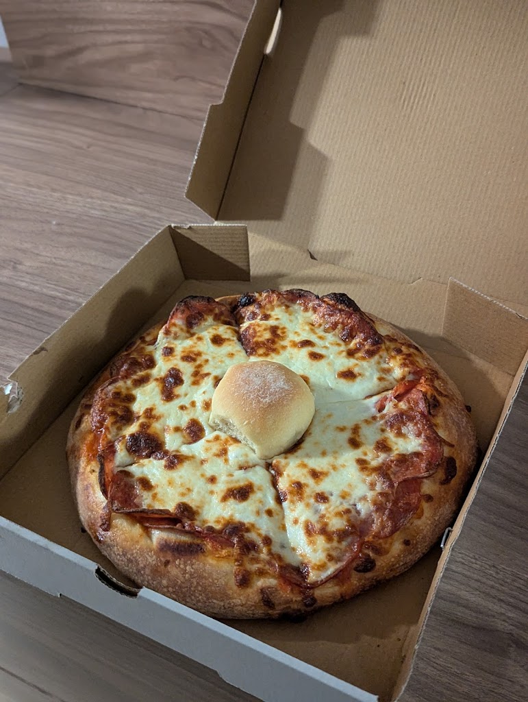 We ordered a Medium Pepperoni. The dough/crust was nice and so was the cheese. It was also loaded with pepperoni, like 3 to 5 layers of it. However, it didn't have much sauce at all and what I did taste was almost like a watery pizza sauce. The dough ball in the middle was fine, but random, it would be a nice addition if it was stuffed with cheese or doused in garlic butter. I would have a slice from here again but would also be curious to try their Italian food, chicken wings, and poutine.