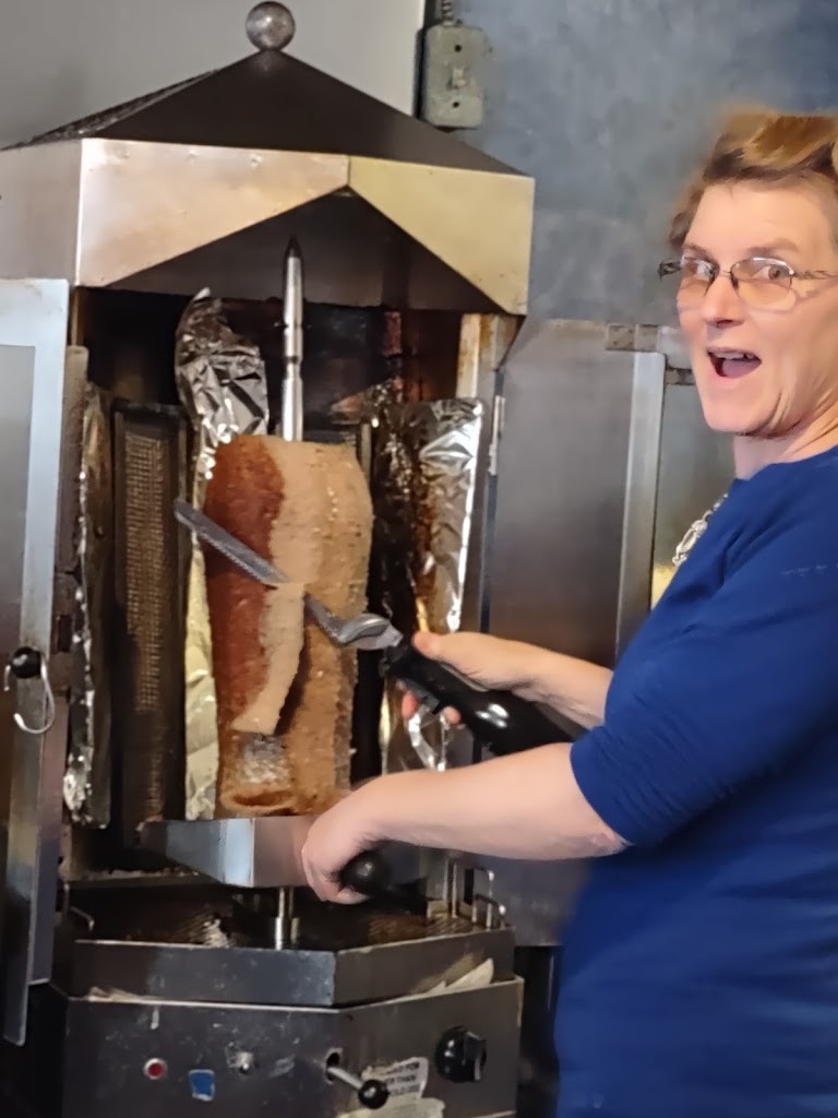 The owner is lovely but works at here own pace. I used to think that her gyros and donairs were excellent but the last time I was in iwas very disappointed. Dont get me wrong I enjoyed my meal but it used to be amazing and now very pedestrian. The protein seemed to be of lesser quality and sauces had less punch.