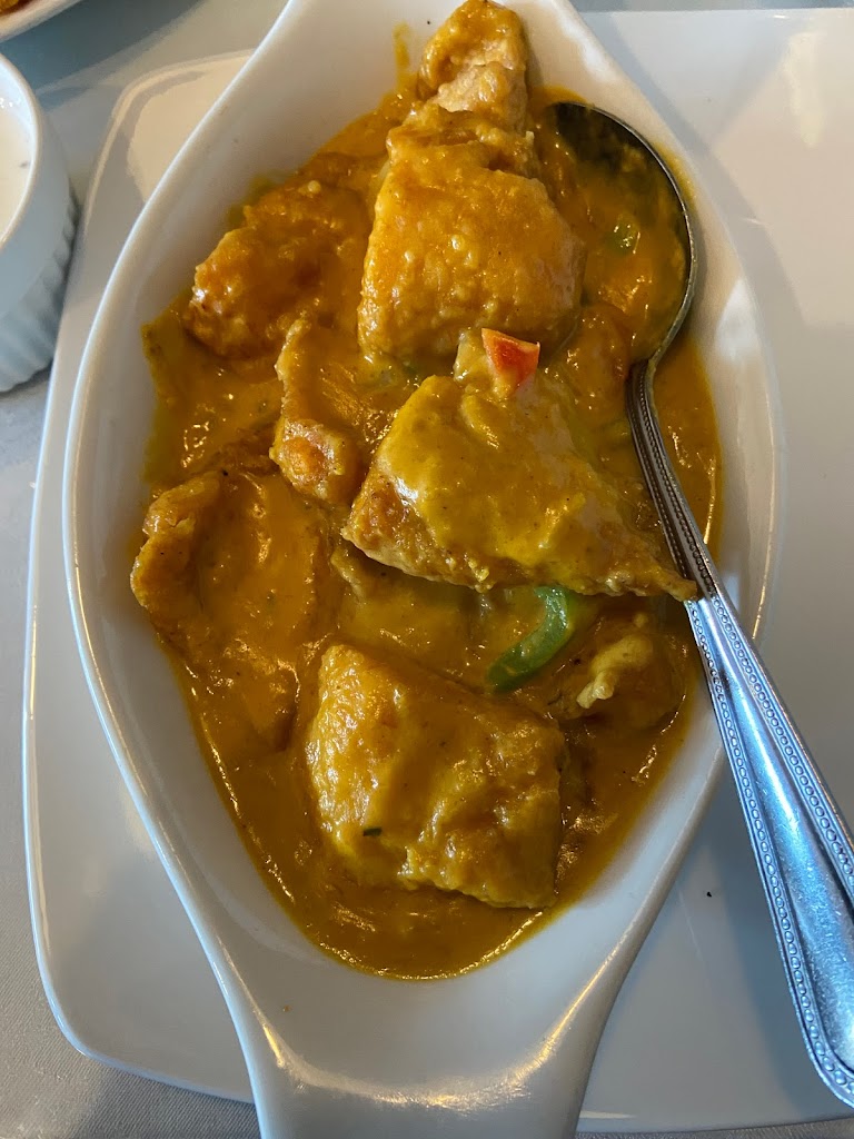 Have not frequented restaurants much since March, and was pleased to be seated with generous physical distancing space around us. Our Meals were flavourful, lots of sauce, perfectly cooked rice with large pieces of Nann. Also our chicken was tender and juicy. I had medium but will try Medium hot next time. Delish!