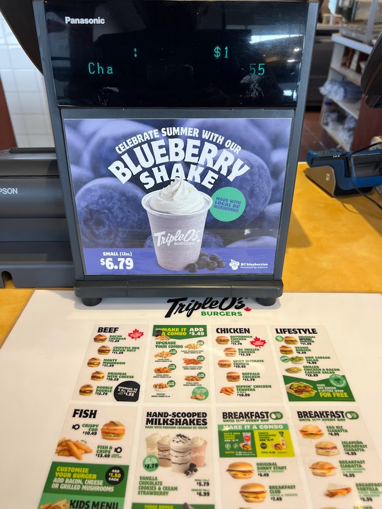 I did a takeout at this Triple O's as there is no White Spot in Cranbrook and the staff were lovely, the food was delicious. If I was to make any recommendation there was no way to leave a tip through the drive-thru! These people work very hard and I think that there should be that option