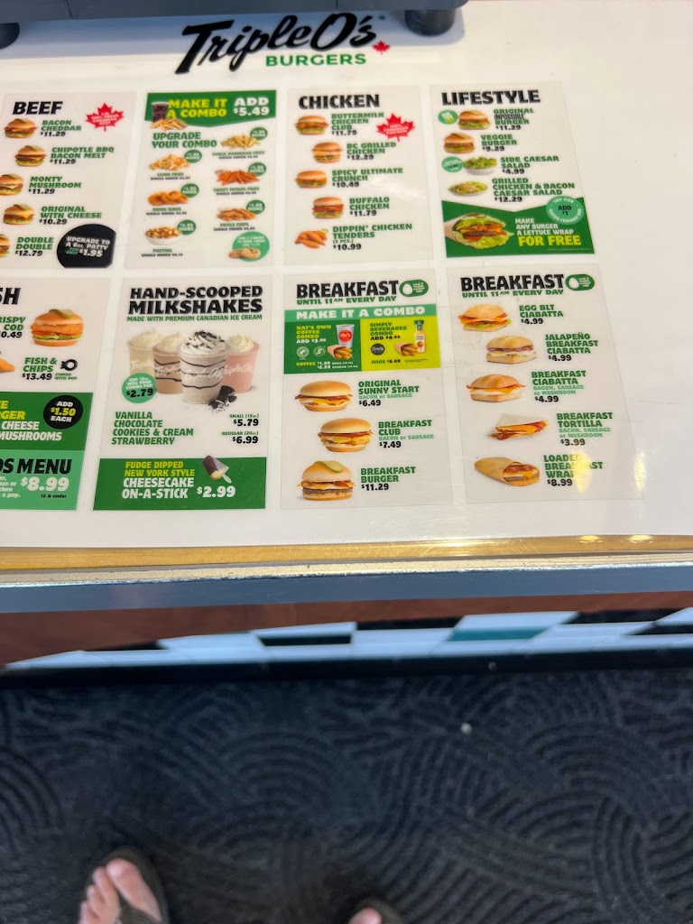Thank you for the great service. We made it just in time for breakfast! We enjoy Triple O s for a quick meal- the best fast food place in town.