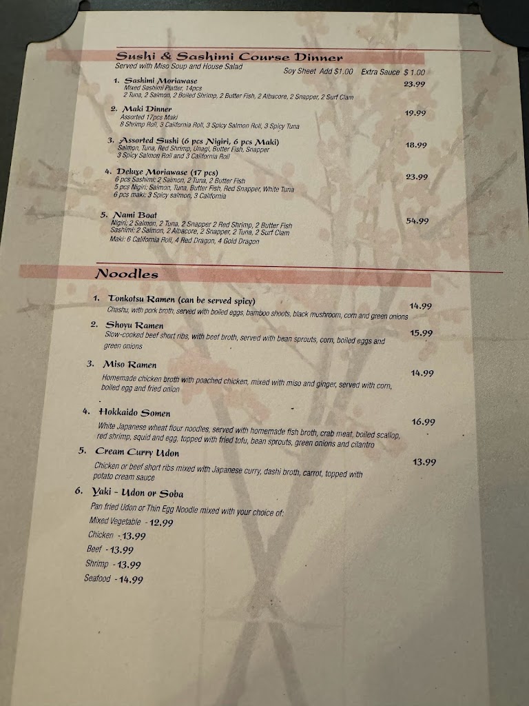 Visited from Toronto and first time trying restaurant. They had a good variety of selections. I chose the dinner special with soup and salad which were both very good. The sushi plate had California roll, spicy tuna, assorted sushi and sashimi. The platter was good but sashimi was cut a bit too thick. I have eaten a lot of sushi and sushi Nami was just okay.
