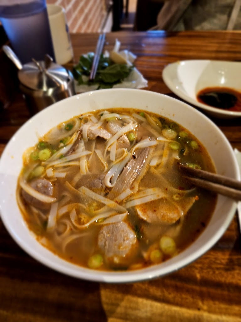 Excellent authentic Northern Vietnamese cuisine. No culinary shortcuts taken here. Broth is deep and rich not watery. House made chili oil is tasty and complex with many spices including lemongrass. Having enjoyed Vietnamese food for many years this was a wonderful experience that expanded my palete and understanding of the 4000 year history of the northern cuisine. This will be our new meal stop when traveling to the ferry.