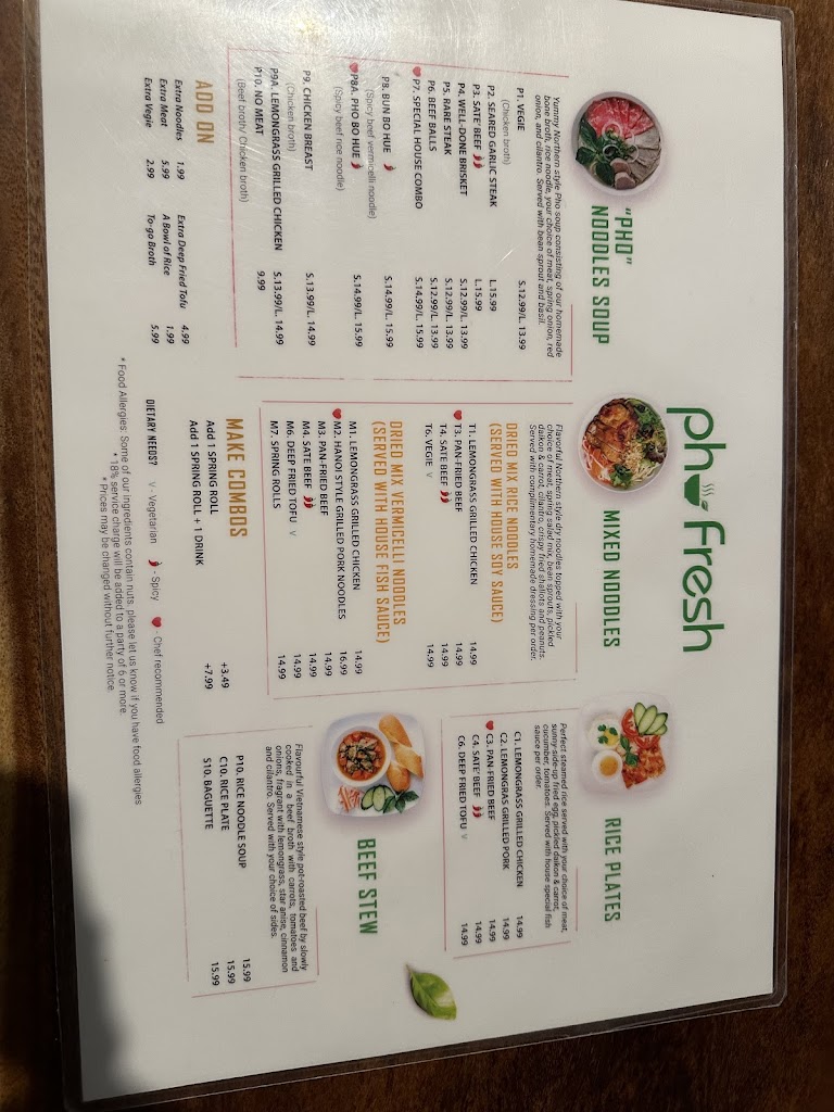 Pho Fresh is an excellent Vietnamese restaurant in the neighborhood, offering a spacious and welcoming environment. The hospitality is top-notch, with friendly staff making the dining experience pleasant. The lemongrass grilled noodles combo and the special house combo are delicious and served in generous portions. The pricing is reasonable, making it a great value for the quality and quantity of food. The vibrant ambiance and comfortable seating add to the overall enjoyment, making Pho Fresh one of the best dining spots in the area. Highly recommended for anyone looking to enjoy authentic Vietnamese cuisine.