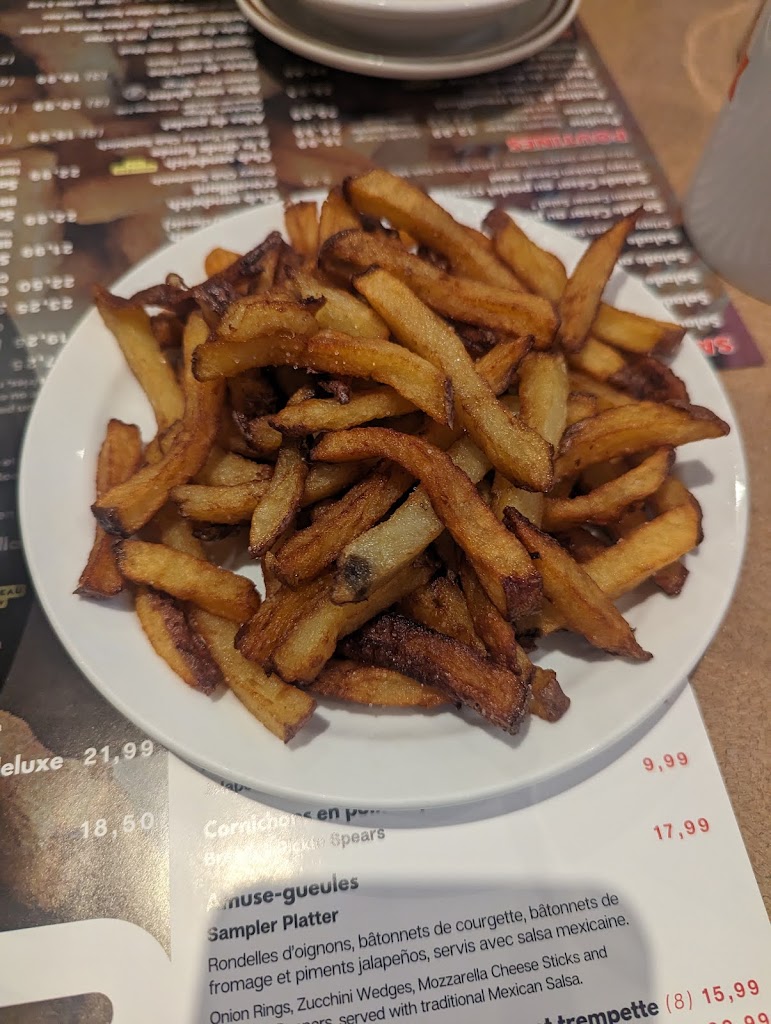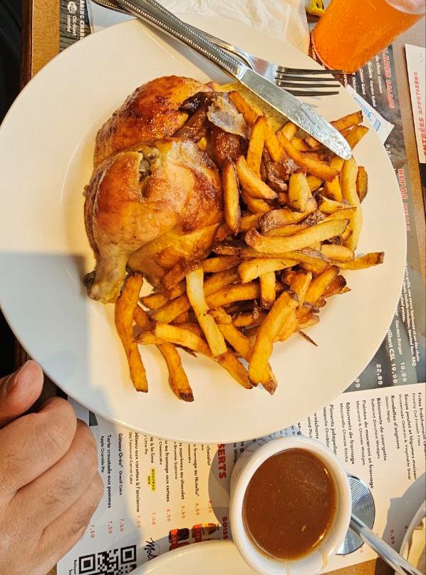 Don t be fooled by the old style restaurant, chicken and fries are MUCH better than St-Hubert, Benny s, or other similar types of rôtisserie restaurants.
