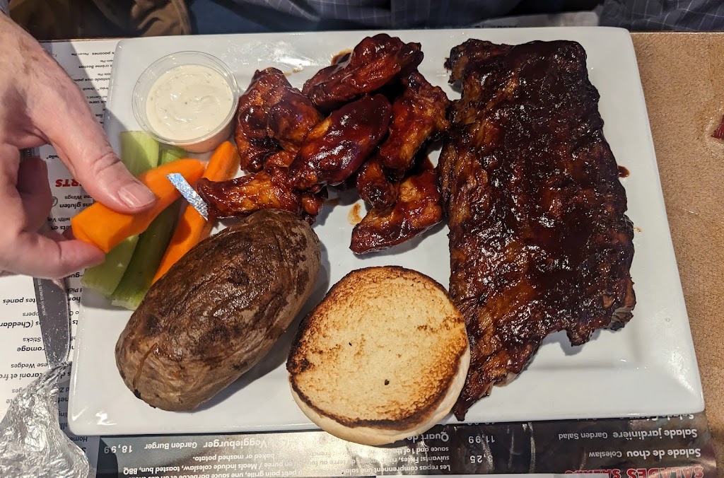 went here to try something new, and i have to say i m impressed. i got the ribs and they were so good i had to get a second plate to go. my friend had a the fish nd chips and she was extremely happy with everything aswell the staff was super friendly and chatty with was great. i definitely recommend this to anyone looking for a good bbq near dollards des ormeaux!!!