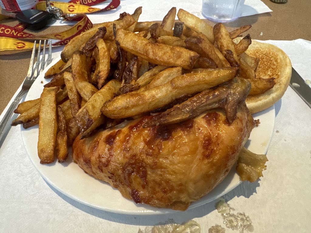 Very good chicken all in all. Nice and juicy with excellent french fries. Having said that, its $20 for a 1/4 chicken leg at take out, rocketing it into the stratosphere on price compared to the competition. For a local BBQ chicken place, its needlessly overpriced, but tasty all in all.