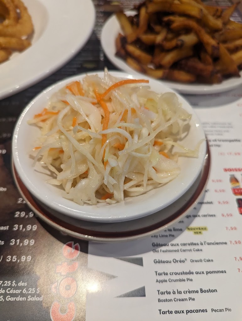 Not too many places make their chicken on charcoal as they do at cote st-luc bbq. That gives it a great taste. I also love the fries and coleslaw.