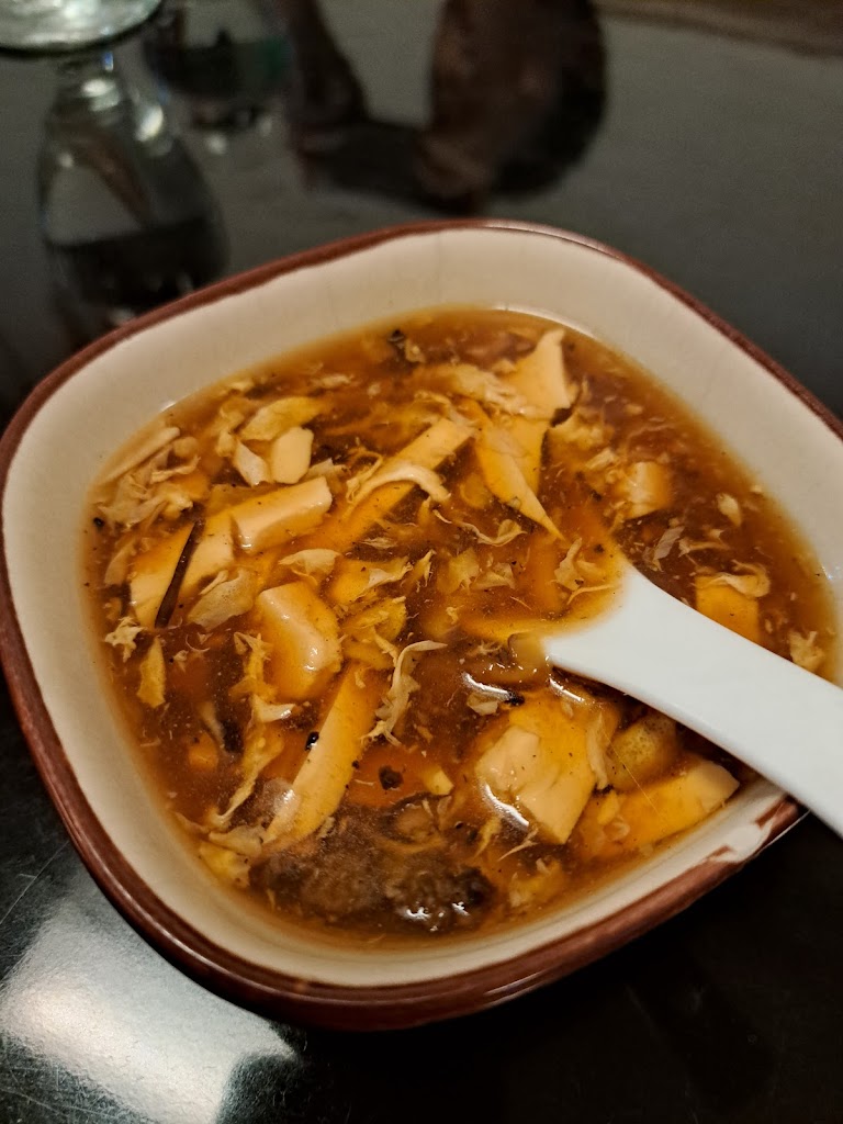 Got a hot and sour soup that tasted like hot water and beef noodles with zero flavor quite possibly the work experience Ive had