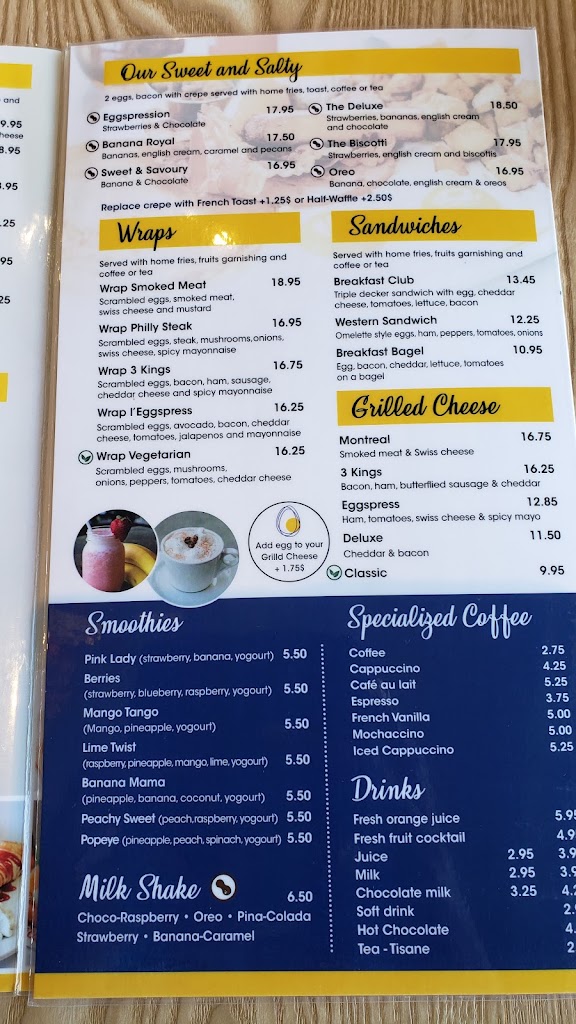 The staff at Eggspress Dorval is friendly and professional. The food is good and the portions are just right.