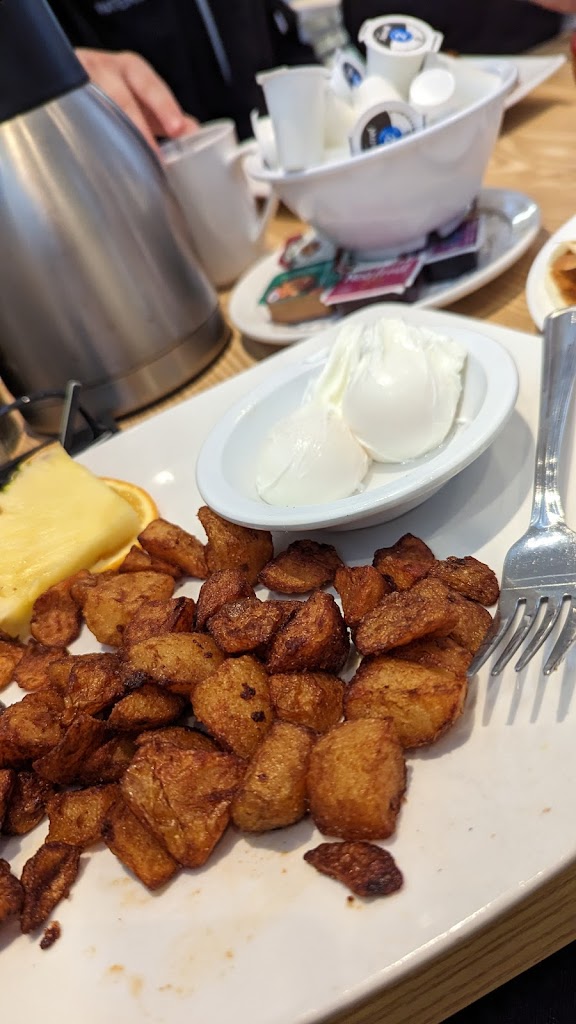 Went here as it is near the airport, waited at the door, plenty of empty tables, many staff saw me and they did not even greet me. The whole experience was like the staff did not want to work here. We asked for water and other stuff and they kept forgetting about it. The food was good but that is all. Food: ⭐⭐⭐⭐ Service: ⭐ Price: $$ ⭐⭐⭐⭐ plate not as full for the price in compare to other breakfast spots. Atmosphere: ⭐⭐ nothing too special just a diner Location: ⭐⭐⭐ not the easiest spot to get to