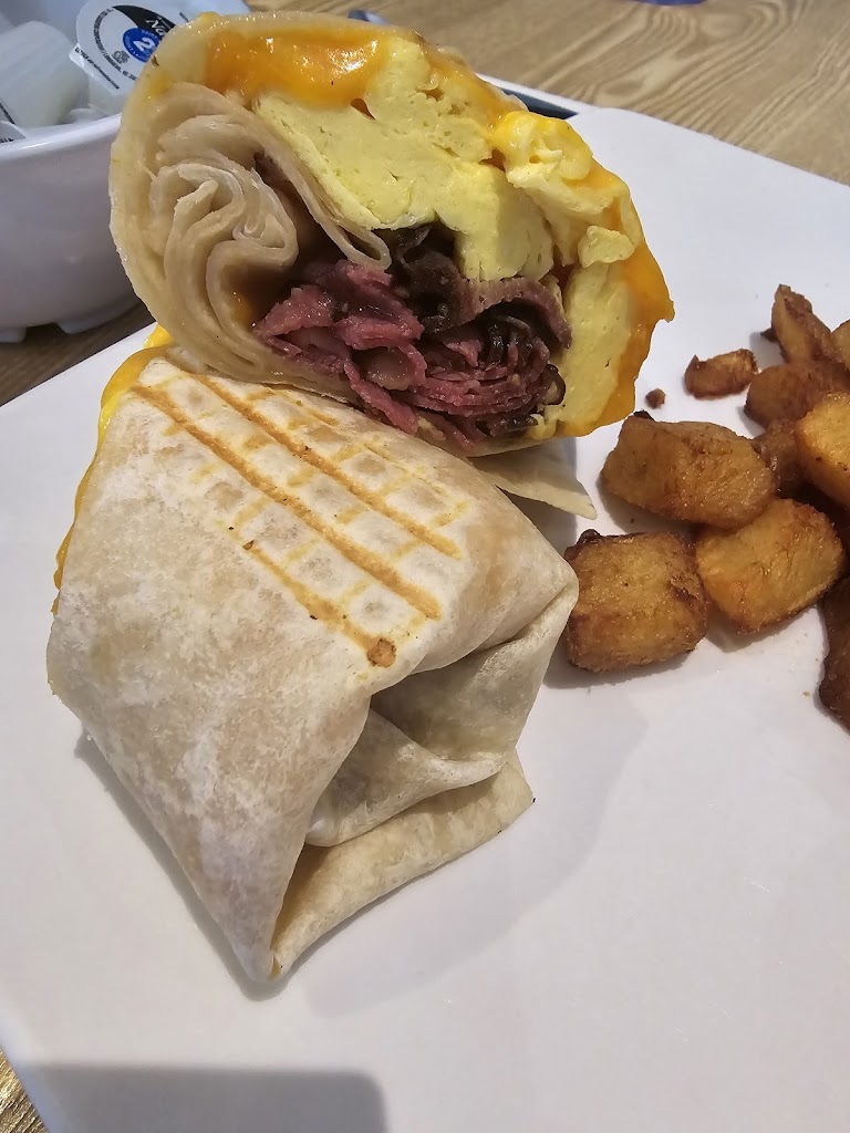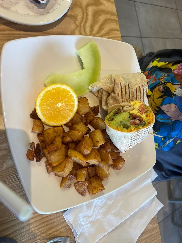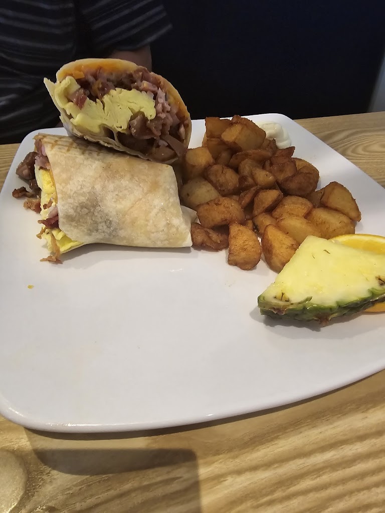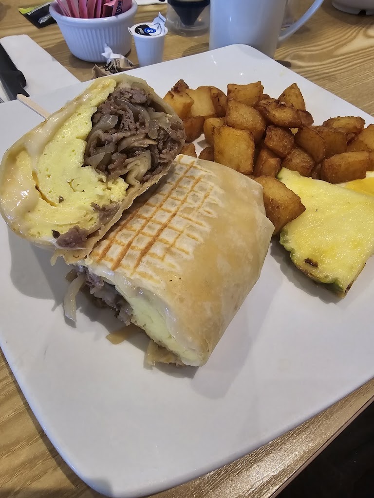 Excellent food and value. Like the fact that Coffee and Tea were included. Fresh fruit showing on menu was more of a garnish than an accompaniment. Would have liked more seasoning inside my steak and egg wrap. Restaurant was very busy and food was plated well so everything came out of the kitchen looking good.