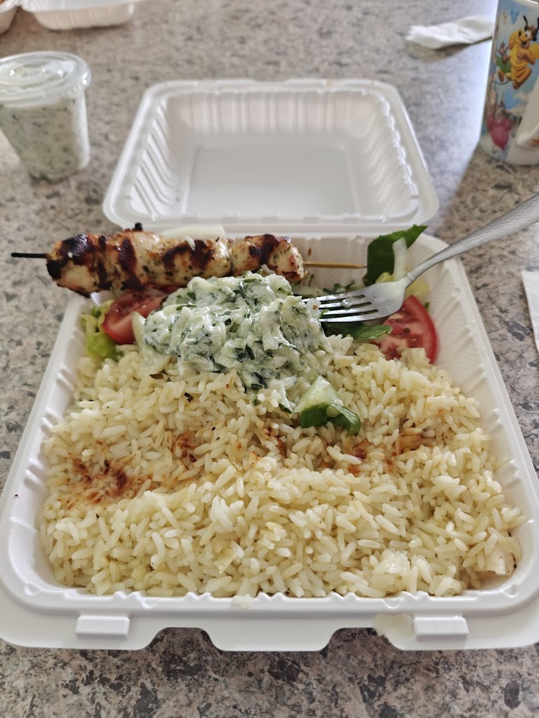 I was pleasantly surprised n’y this little good court restaurant. I had chicken brochette dish servez wishes rice, Green salad, fêta chères, olive , pita bread , tzaziki homemade. Sauce & excellent home made fries. Everything was vers fresh & tasty. The staff was allô very friendly. Loved it!