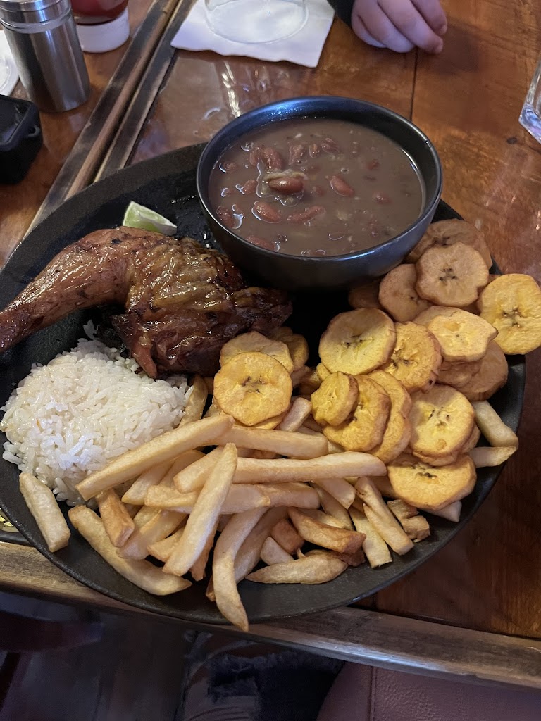 Excellent repas de viandes grillées sur braises, frites et plantains. Le plat à partager est énorme et vraiment bon marché. La limonade: succulente! Restaurant qui gagne à être connu.
