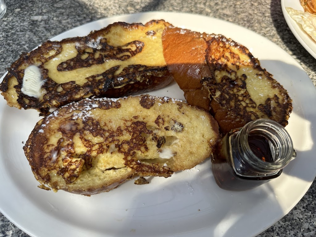 Its chilly inside, the coffee was bitter. Portions are big, but the quality lacks. Spoiled creamers, and small things stuck to my pat of butter for French toast, which was undercooked inside.