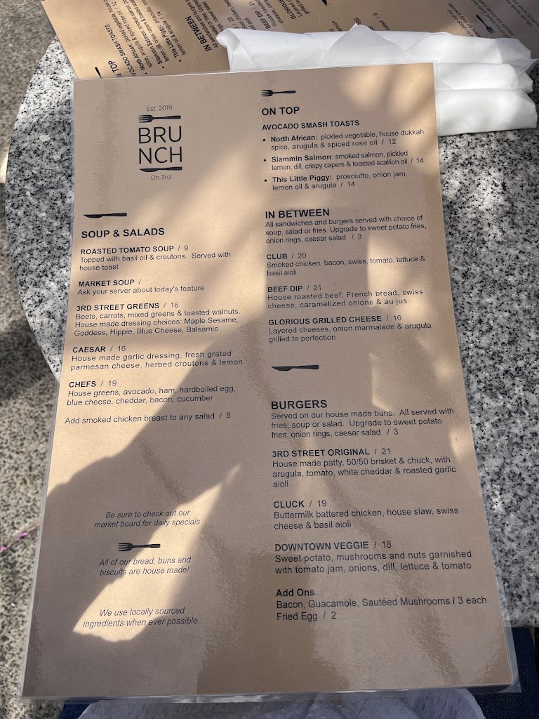 Me and my husband were looking for a hidden gem breakfast joint on our weekend getaway and Bruch on 3rd was the perfect spot. From the cute aesthetic and wonderful atmosphere to the great service and amazing food, we would definitely recommend it!
