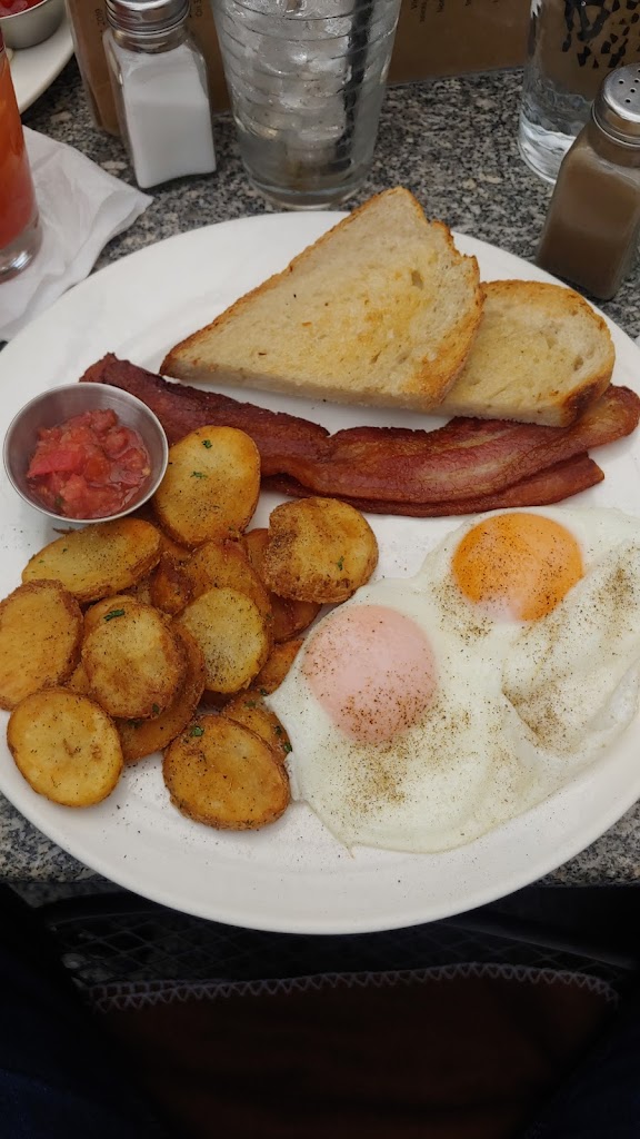Great food, great service! This is the Hash with bacon no toast with tomatos instead. So filling!