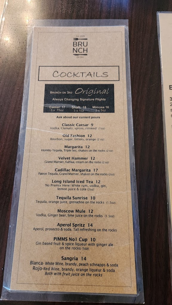 Food was very basic, things you could make at home easily. Wasn t impressed by the drinks either. The staff was nice, which I d say is the only good thing about Brunch on 3rd. Wouldn t suggest to anyone.