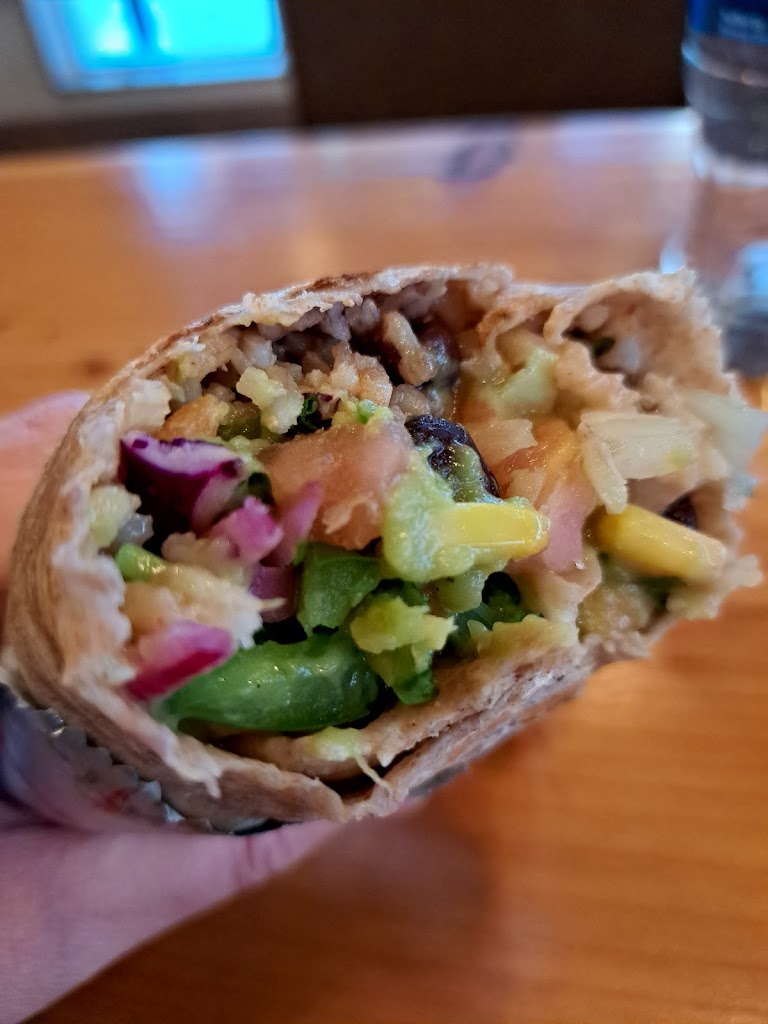 All staff properly wearing ppe equipment this time. Great beyond meat burrito! Stuffed so full of veggies and good fresh ingredients. So good!