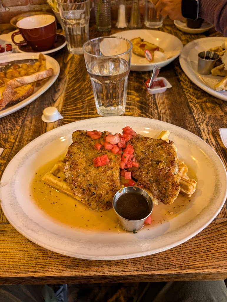 Absolutely delish!!! Chicken and waffles were so good! Had a generous side (3 slices) of bacon, which was nice and thick and yummy. Get there early if you want the homemade cinnamon buns (we missed out unfortunately). Nice variety of drinks. Atmosphere is really great; warm, welcoming, trendy and eclectic. Will definitely come back!