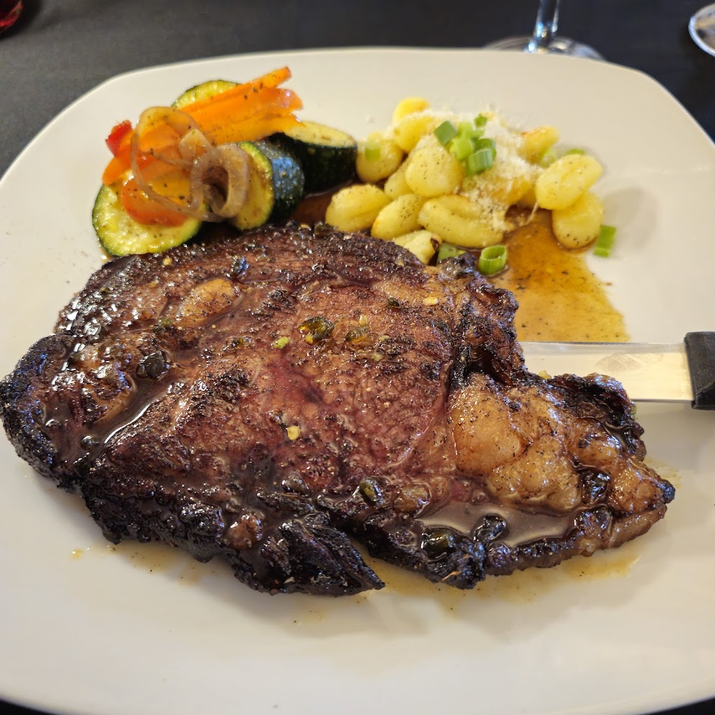 Friendly service and delicious Italian food. The rib eye steak was tasty. Pasta was very good also. Would return