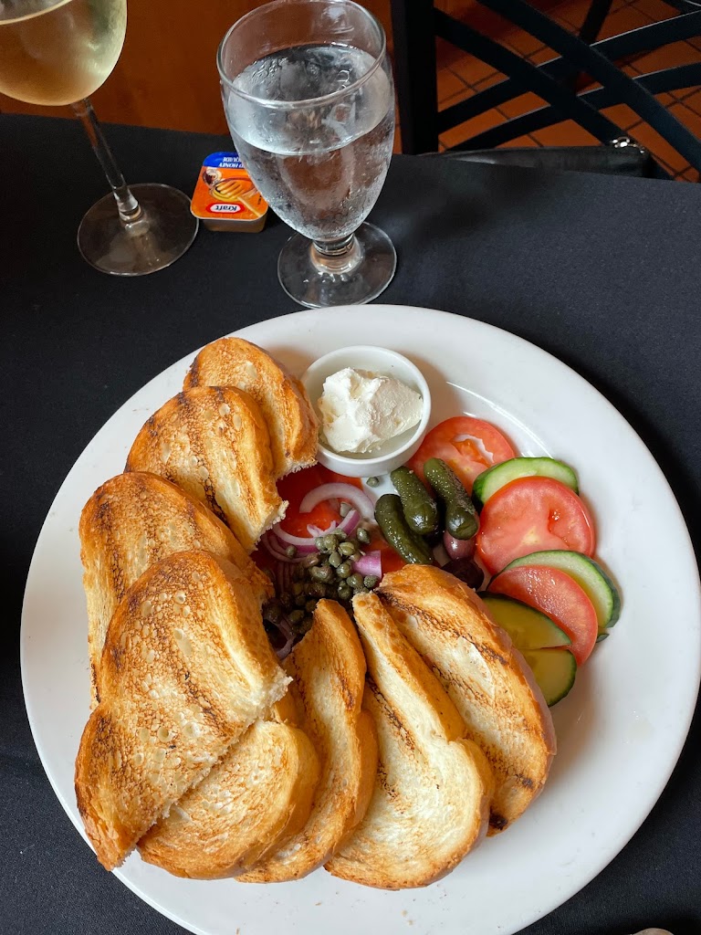 Food is great. Not happy with the forced 20% gratuity. The waitress spilled a part of my mimosa on my fur coat and I not Only had to pay for the drink, get my coat dry cleaned but on top of it pay her 35$ in a tip. Sad but I wont Be coming back. Food
