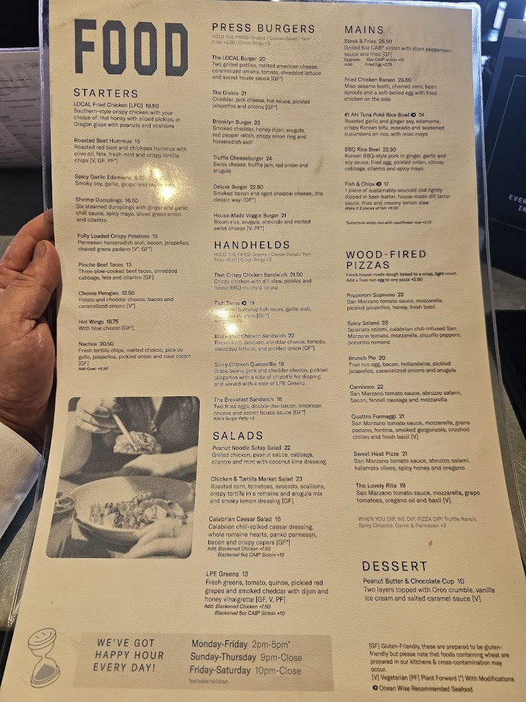 Very tasty food. I ve eaten at Local Jasper Ave. several times and never disappointed. Food is underrated. Shrimp dumplings, chicken sandwich, poke bowl, salads and pizza are excellent.