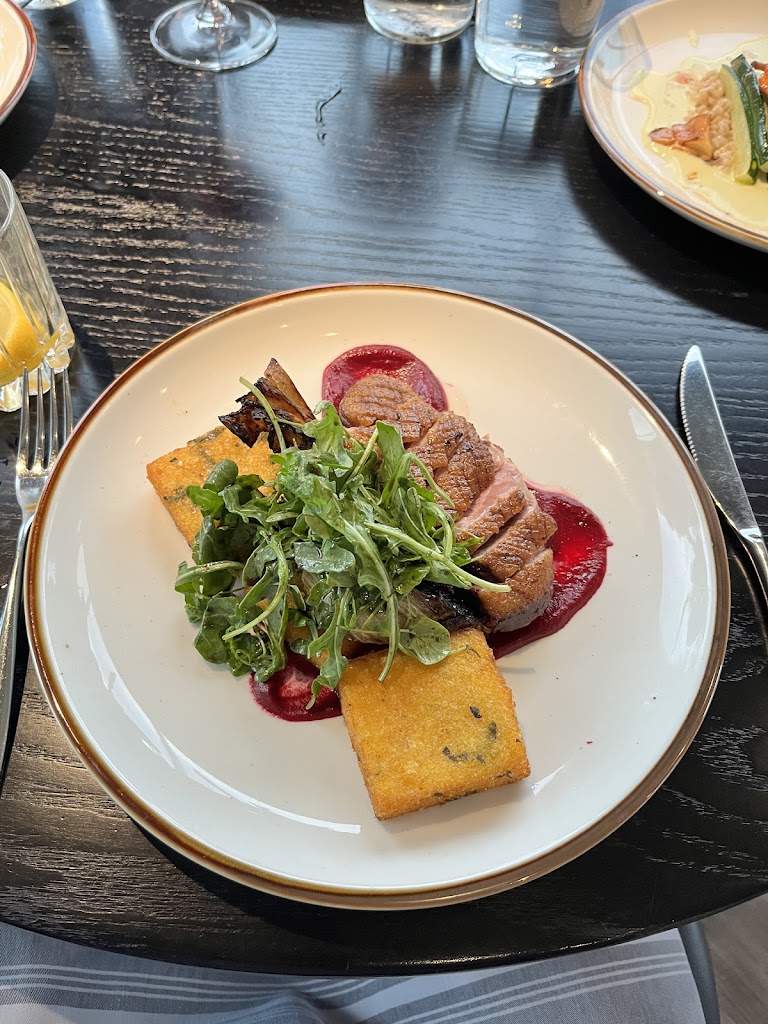 Well first the serving staff are a delight. Then the duck was fabulous, and weirdly enough the corn was delicious. Better than corn has any right to be. Quite happy with the dessert as well.