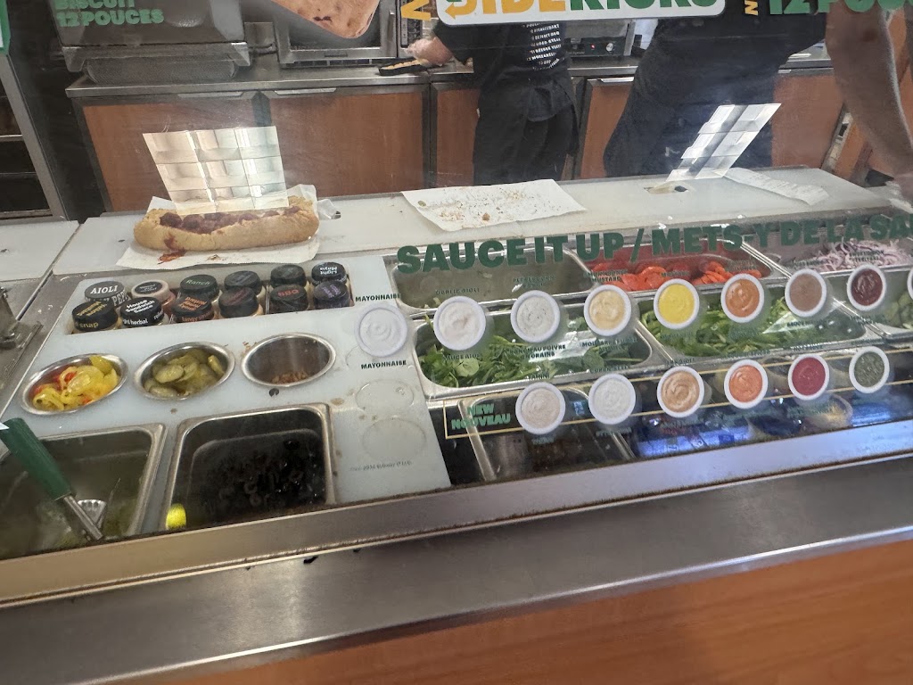 I went to the subway on January 2, it had no salad, no spinach, no cucumber and no mayo! We left without buying anything after waiting in line for 30 minutes!