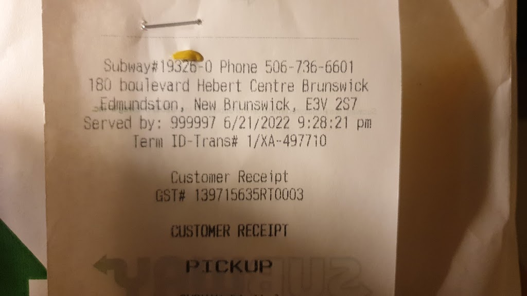 Your local Edmundston Subway® Restaurant, located at 180 Hebert Blvd brings new bold flavors along with old favorites to satisfied guests every day. We deliver these mouth-watering flavors with our famous Footlongs, 6” sandwiches, wraps and salads. And we offer a variety of ways to order—quick and easy in the app or online, convenient delivery, come into your neighborhood shop for an in-restaurant meal, or pick up curbside. We’re proud to offer a change from same old fast food with fresh cut veggies and toppings with protein choices, fresh-baked bread and let’s not forget cookies! And we’re happy to help you with any catering needs as well. All Subway® Restaurants are independently owned and operated by business owners who employ talente...
