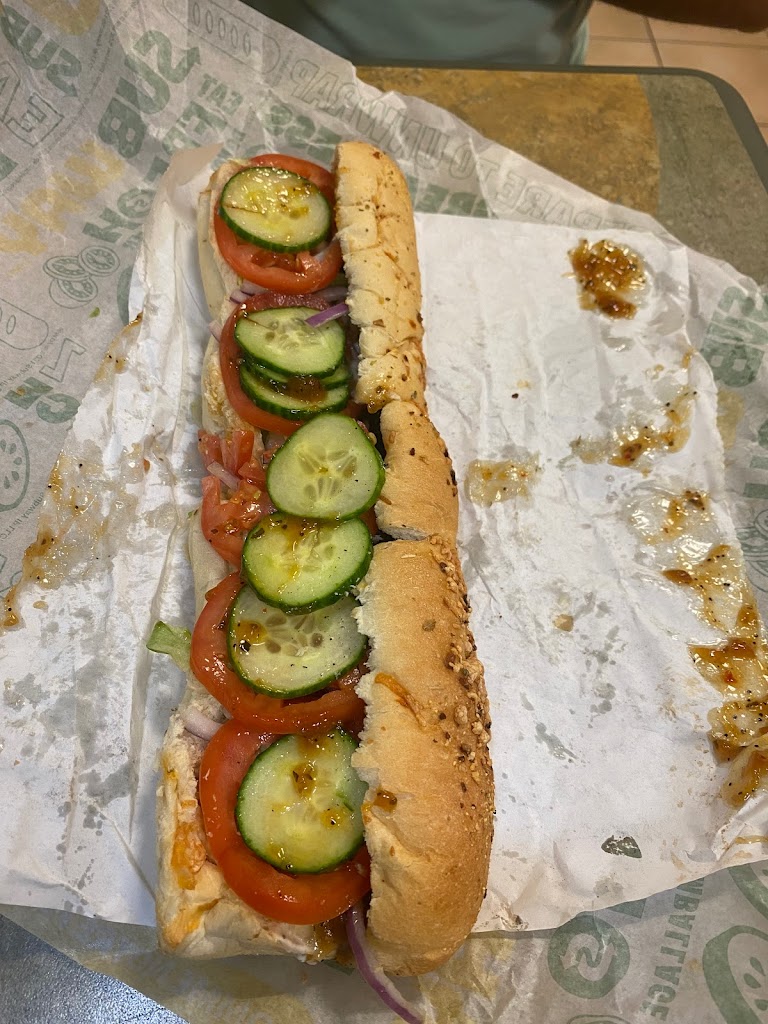 The girl working was alright but the guy putting the veggies on was literally throwing the stuff on the bread with zero thought. Tables were sticky, had to wipe it down myself. Food