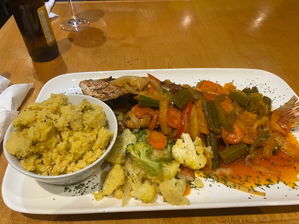 My husband and I went for the first time and we had the brownstewed fish and it was amazing. Looking forward to our next visit and trying something different. Parking: Large parking lot in the plaza