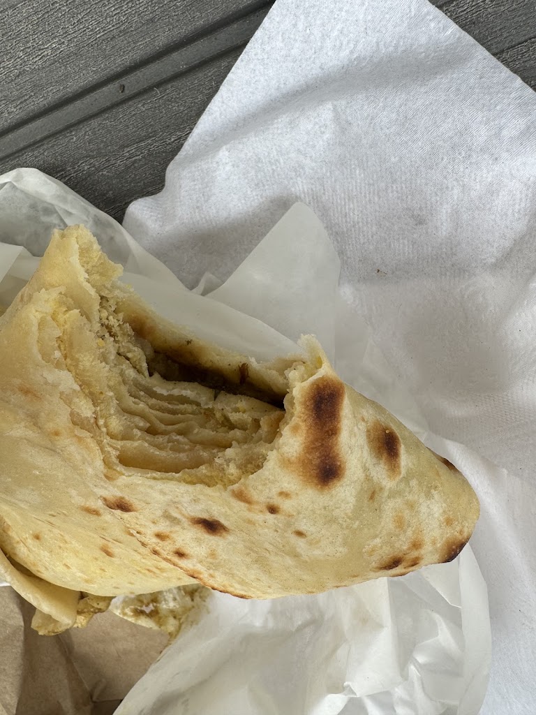 Really fresh and home-made feel. The texture of the roti and the spices were absolutely delicious. Had the chicken roti and chickpea roti and both were so good. Highly recommended. Best to order before you head there as the lady Pam makes them fresh from scratch which is nice, takes about 20mins per order.