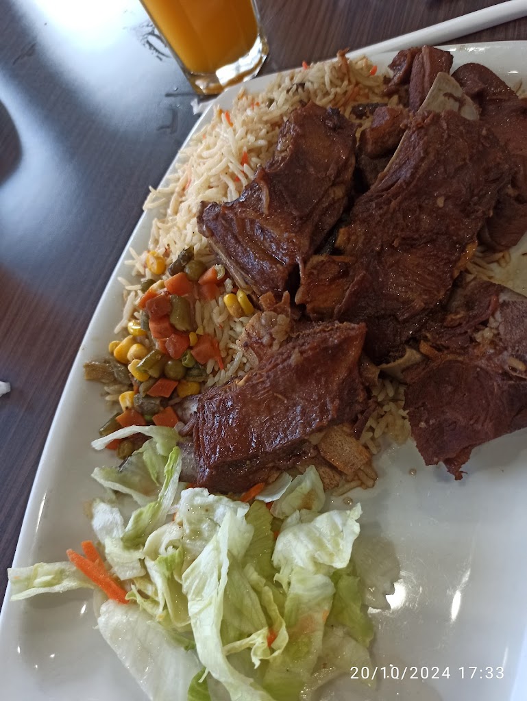 Tonight's family dinner at the was a memorable experience, filled with flavors that transported us straight to the heart of Somalia. The portions were incredibly generous, ensuring everyone left feeling satisfied and content. Each dish was a testament to the rich culinary heritage of Somalia, bursting with authentic tastes that delighted our palates. While the food was exceptional, there were a couple of areas that could be improved. The lack of air conditioning made the dining experience a bit uncomfortable, especially on a warm evening. Additionally, the absence of a baby changing station in the restroom posed a challenge for families with young children needing to change diapers. However, the restaurant's thoughtful inclusion of a prayer room was a wonderful touch, demonstrating their commitment to accommodating the diverse needs of their patrons. Overall, the delicious food and generous portions more than made up for the minor inconveniences. If you're looking for an authentic Somalian culinary adventure, this restaurant is definitely worth a visit!