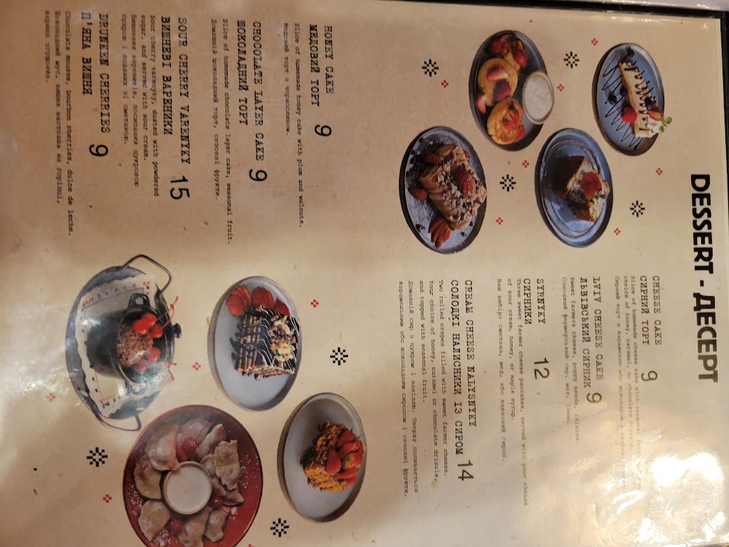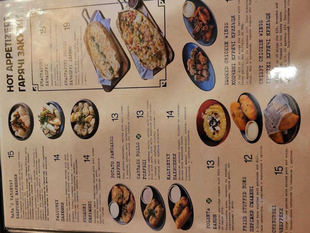 I have tried a few of the menu items and everything was absolutely delicious!! Definitely recommend the chebureky, hachapuri and the medovyxa!!! Absolutely great Ukrainian menu!! Food