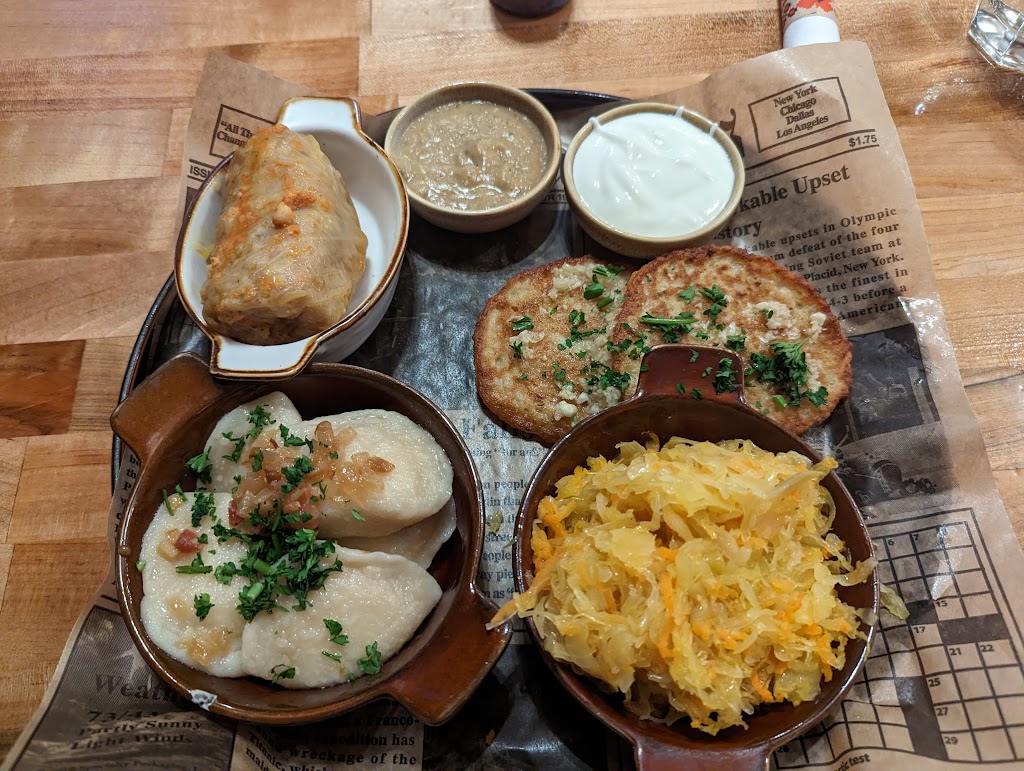 I loved Barrel House Korchma. They have amazing house made traditional Ukrainian food which reminds me of babas. We had the cabbage rolls which were phenomenal. The perogies with potato, butter, and onion just how I would have it during holidays. I truly loved them. The kielbasa sausage was delicious. If you have never had Ukrainian food this is a great place to visit. I highly recommend and would love to come back.