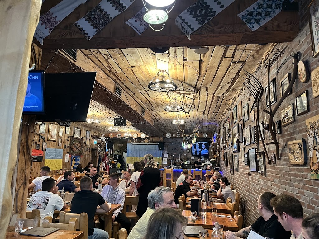 Nice establishment. I was here for the first time, but there were many people who looked like regular visitors. That is, people vote with their wallets. The owners support the fight against the invaders and help to free our Ukraine from the copepods. I dont know about the kitchen. And the beer was quite cold :)