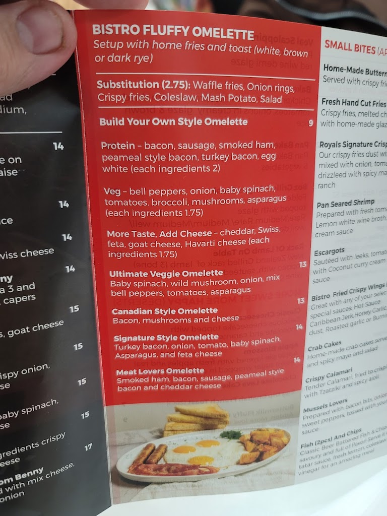 I visited Royal Bistro on Monday morning for brunch with friends, and it was such a delightful experience! The place has a cosy and welcoming atmosphere that instantly makes you feel at home. The food was absolutely fantastic the steak sandwich was perfectly done, and the crab cake was hands down one of the best I ve had in Toronto. A special shoutout to Lily, our server, who was one of the sweetest and most welcoming people I ve met in the city. She made the whole experience even more enjoyable with her kindness and lovely conversation. My friends and I have already decided to make Royal Bistro our regular spot, especially for brunches. Highly recommend checking it out!
