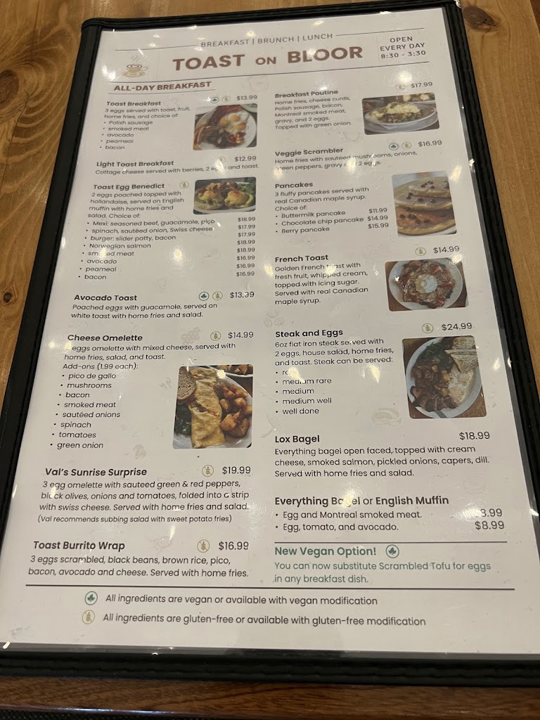 Loved our breakfast at Toast on Bloor. The breakfast poutines gravy was finger licking delicious! And excellent service from our kind server. Highly recommend!