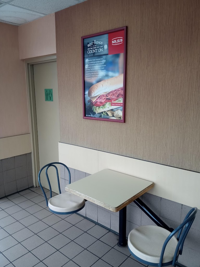 Very excellent service. Late hours and all ingredients used are fresh each day not stored and re-use the following day. Very clean, friendly atmosphere. My most favorite Mr. sub location in the city.